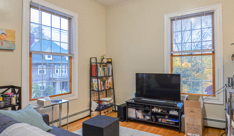 The 2 bedroom apartment has large modern windows and plenty of space.