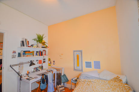 Apartment with spacious living room and cozy kitchen, updated appliances, & gas stove.